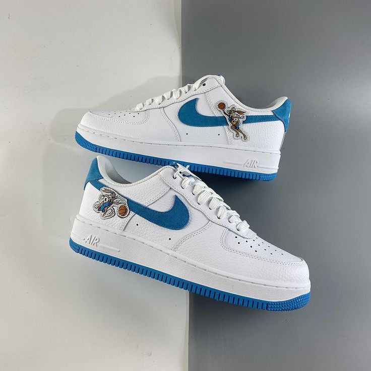White/LT Blue Fury ShoesGraphics on the shoe highlight characters from Space Jam: A New Legacy.Leather and textile materials provide durability and a classic AF1 feel.