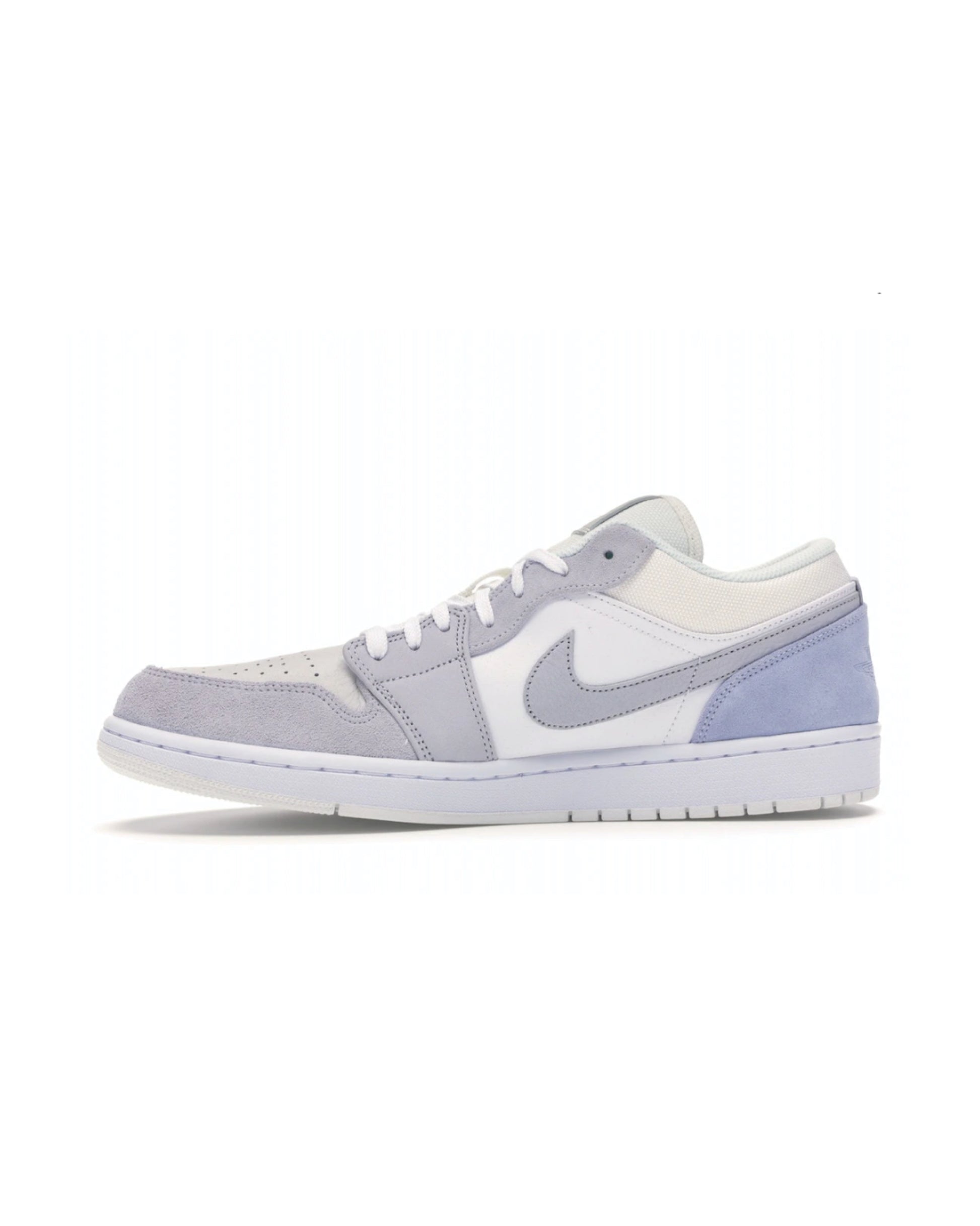 The Jordan 1 Low Paris features a white, Sky Grey, and Football Grey textile, leather, and suede upper, with smooth leather making a minimal appearance in white on the quarter panels of the shoe. From there, the collar and tongue of the silhouette are both outfitted in sporty textiles and a debossed "Air Jordan" logo with a grey Nike "Swoosh" complete the design.