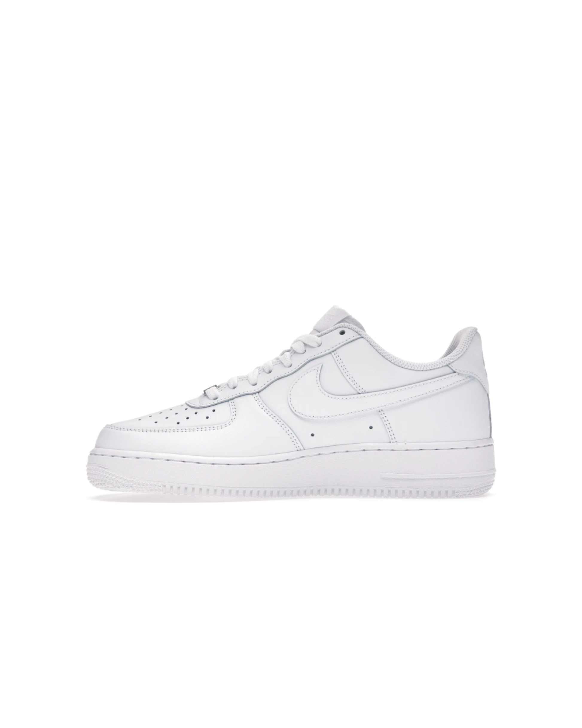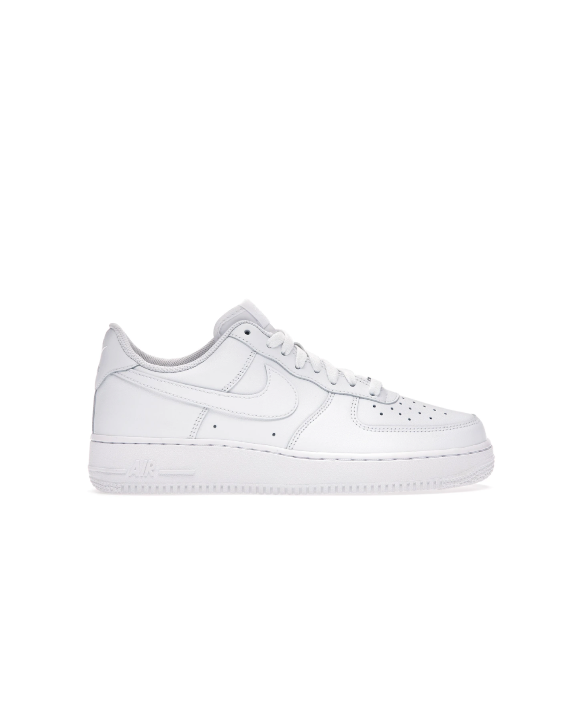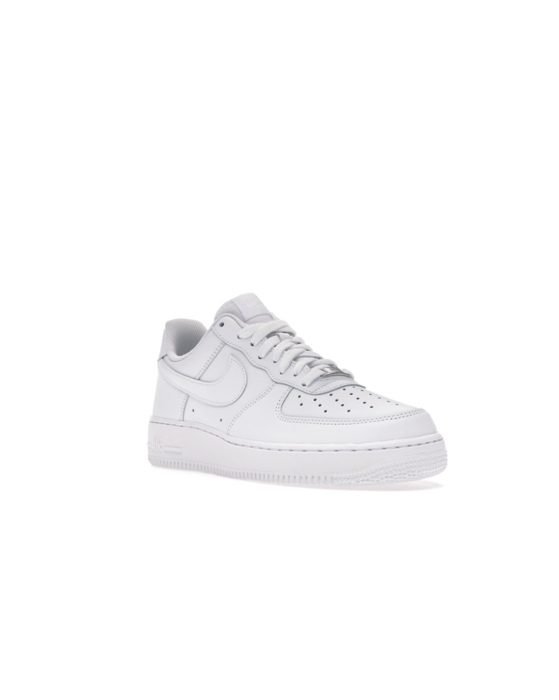 The AF 1 Low White ‘07 features an all-white leather upper with a perforated toe box and Swoosh overlays. A heel embroidery and white sole completes the design.