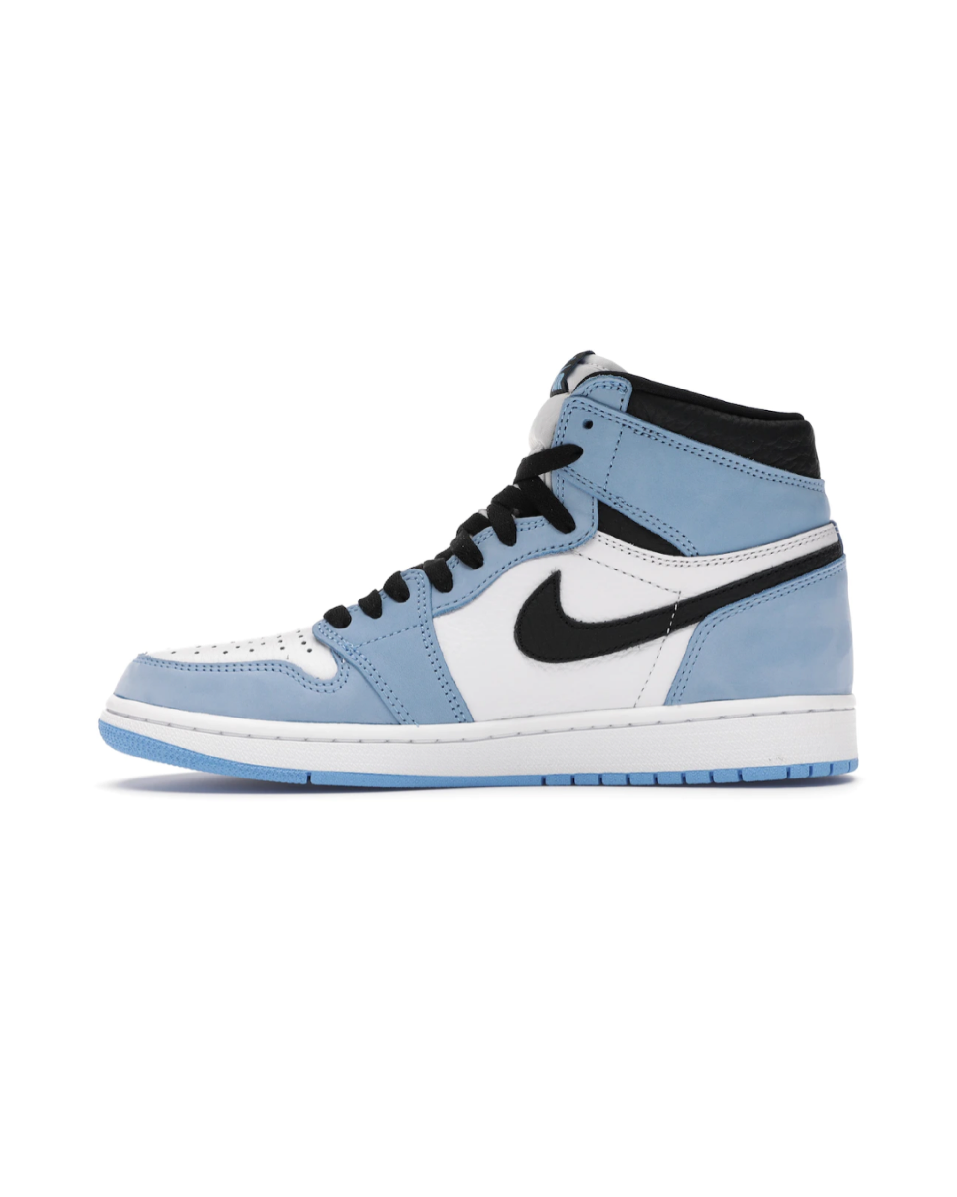 The upper of the Air Jordan 1 High University Blue is composed of a white and black tumbled leather upper with University Blue Durabuck overlays. Following traditional Jordan 1 detailing, a Nike Air woven label is located on the tongue and an Air Jordan Wings Logo is printed on the ankle. A white midsole and University Blue outsole complete rejuvenated classic.