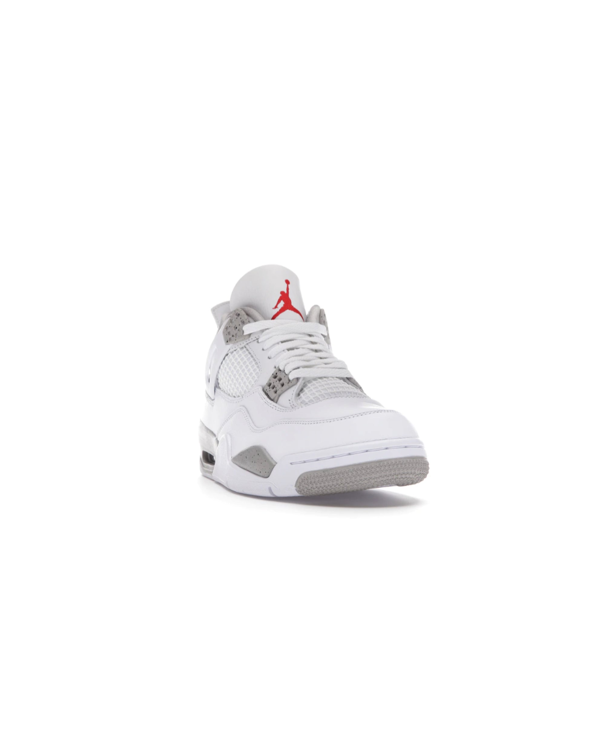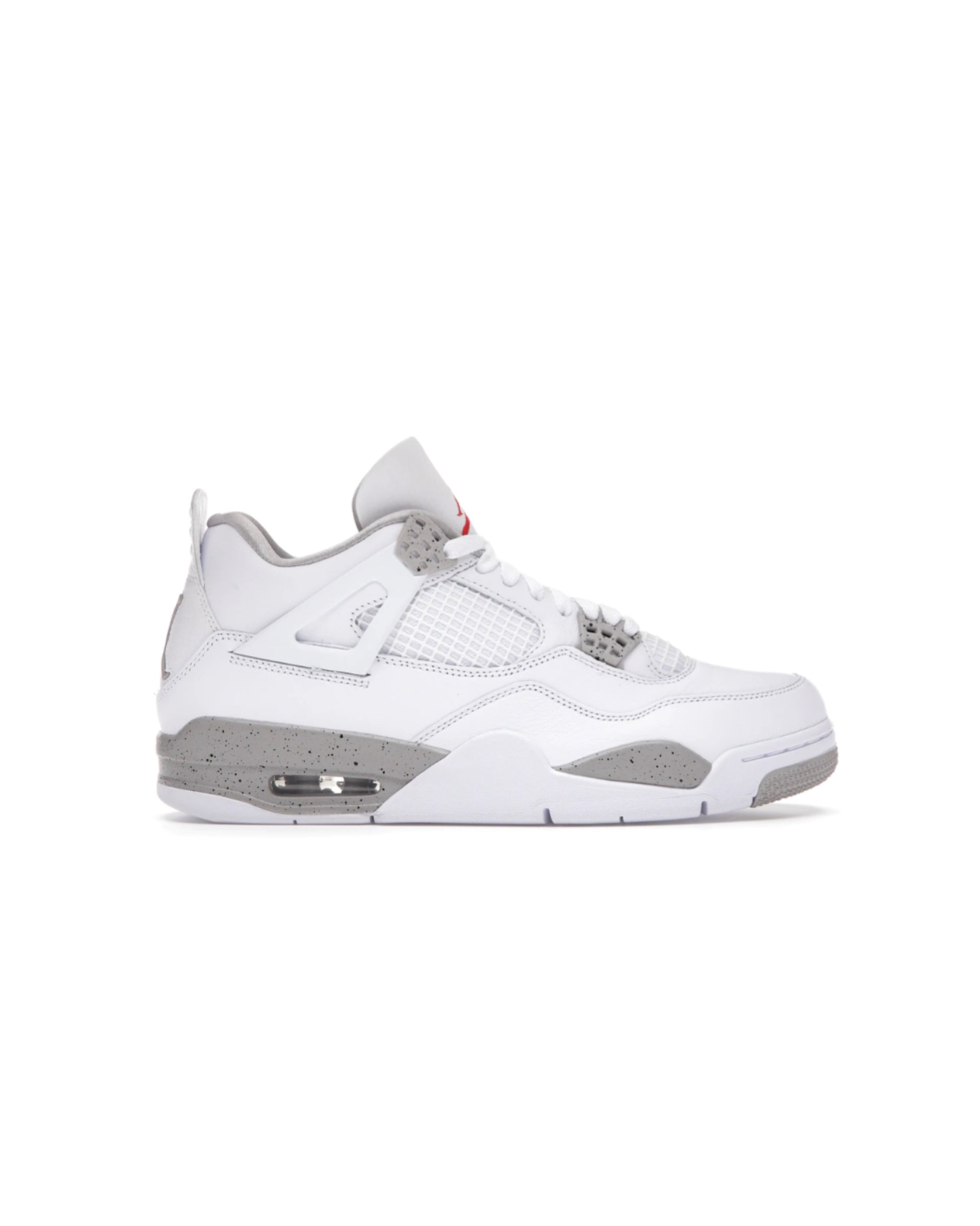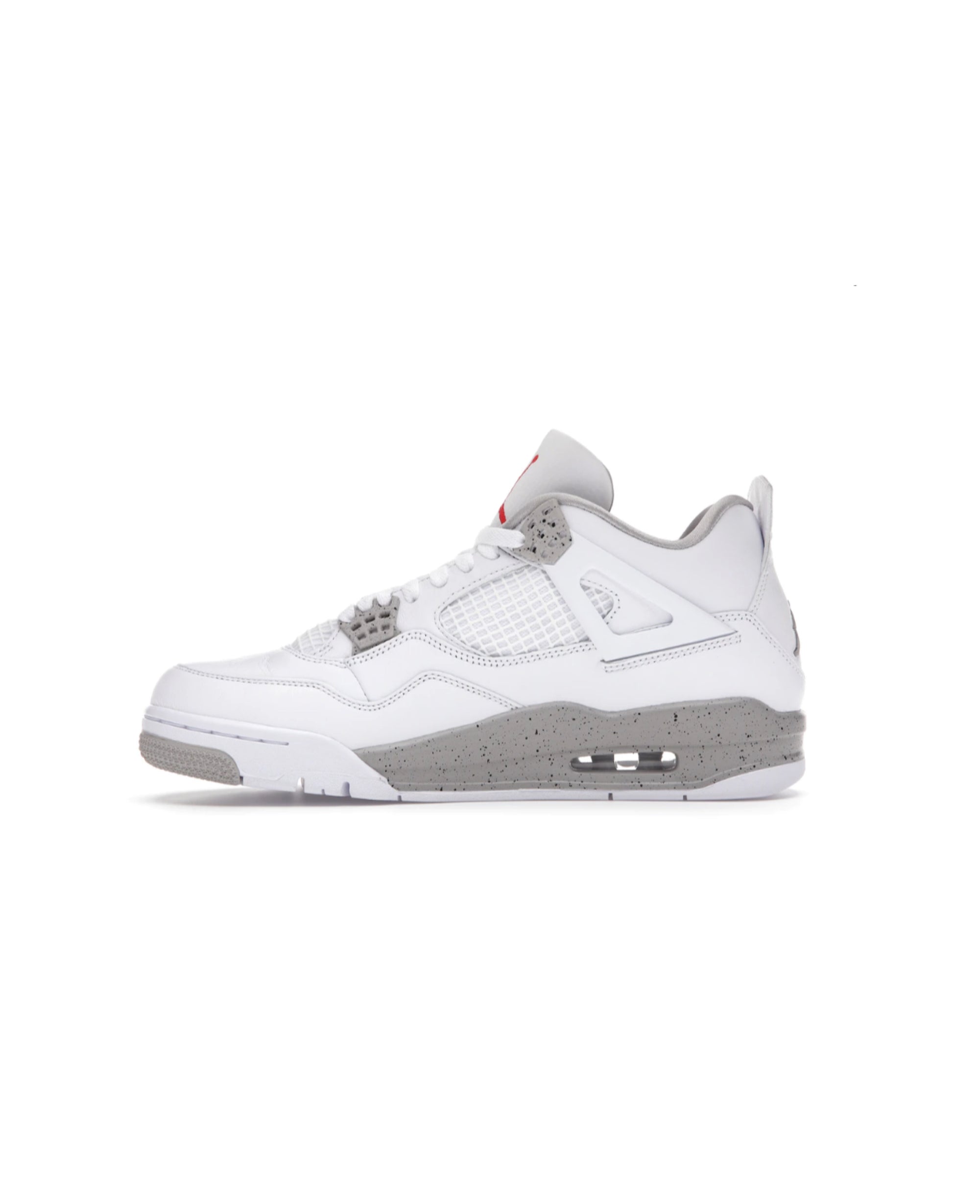 The Air Jordan 4 Retro White Oreo features a white leather and mesh upper with hits of Tech Grey on its eyelets and midsole. From there, a red Jumpman logo is embroidered on the tongue, adding a pop of color to the neutral-toned design.