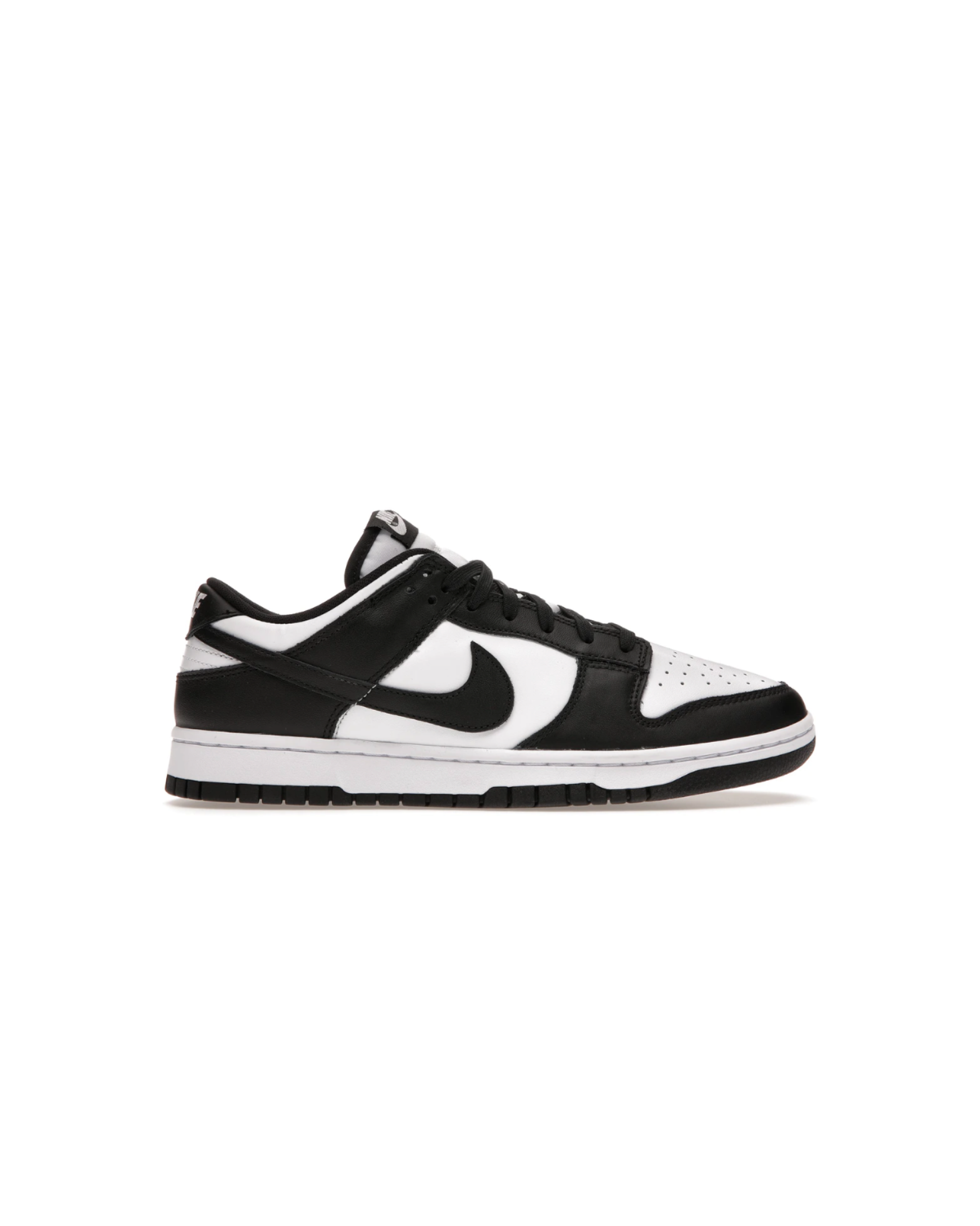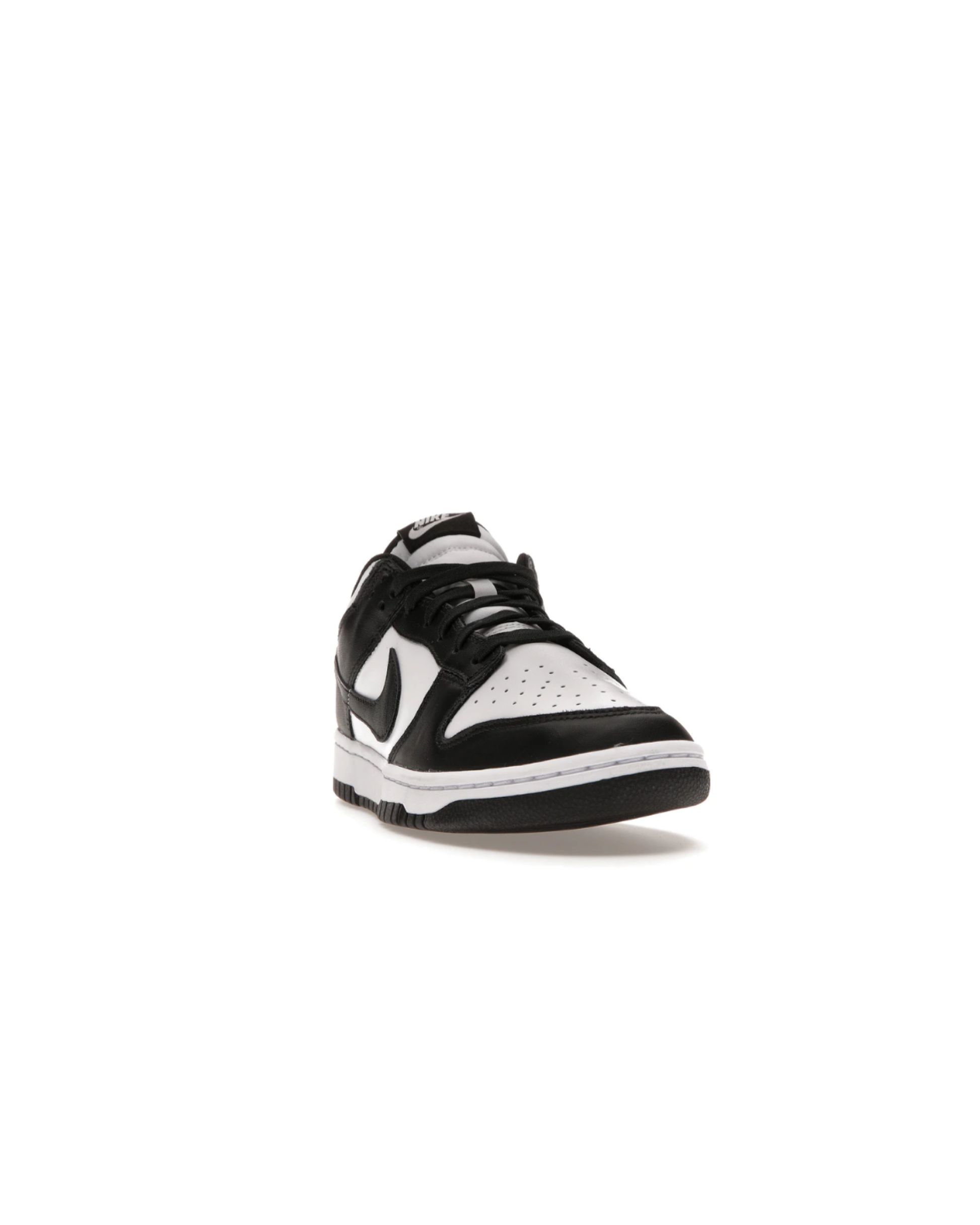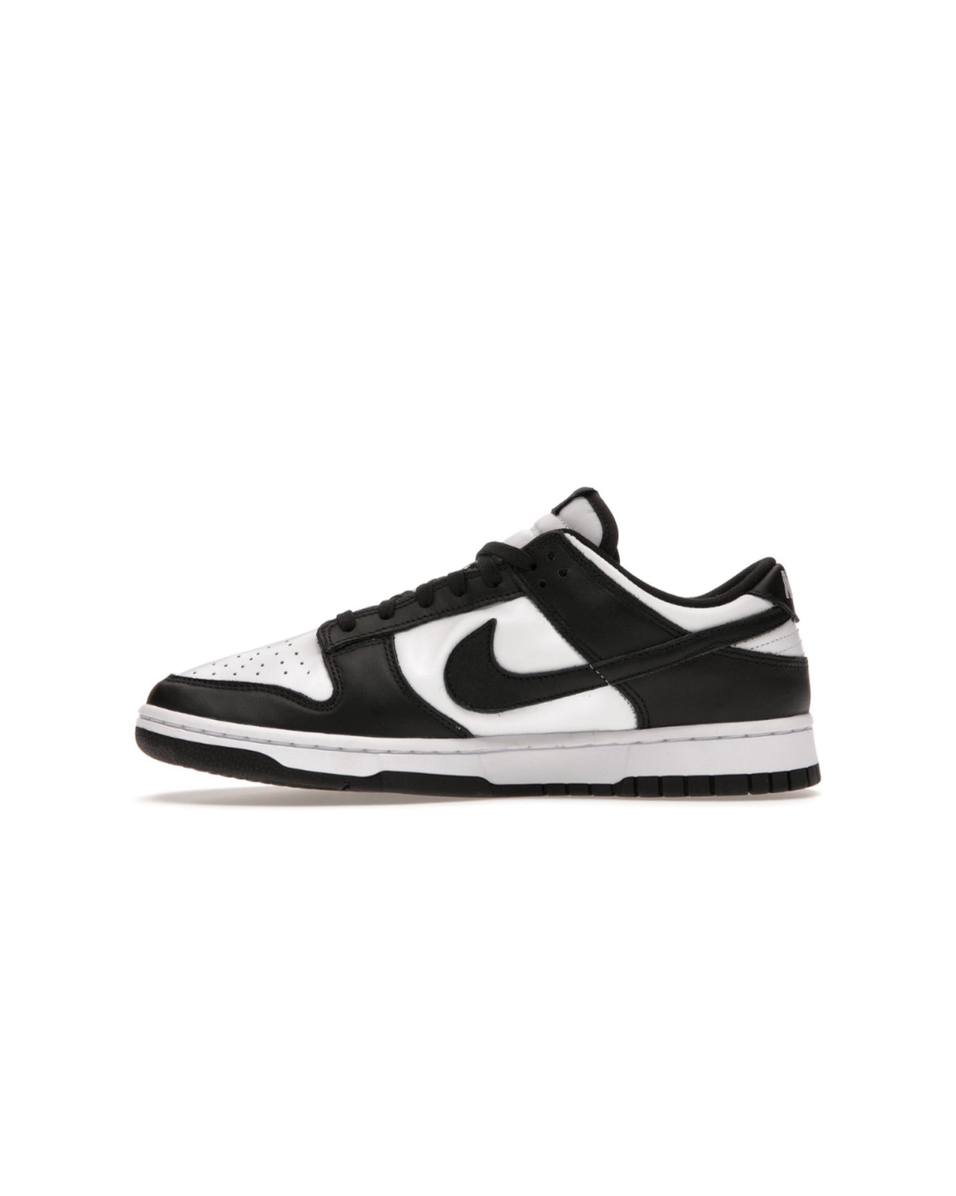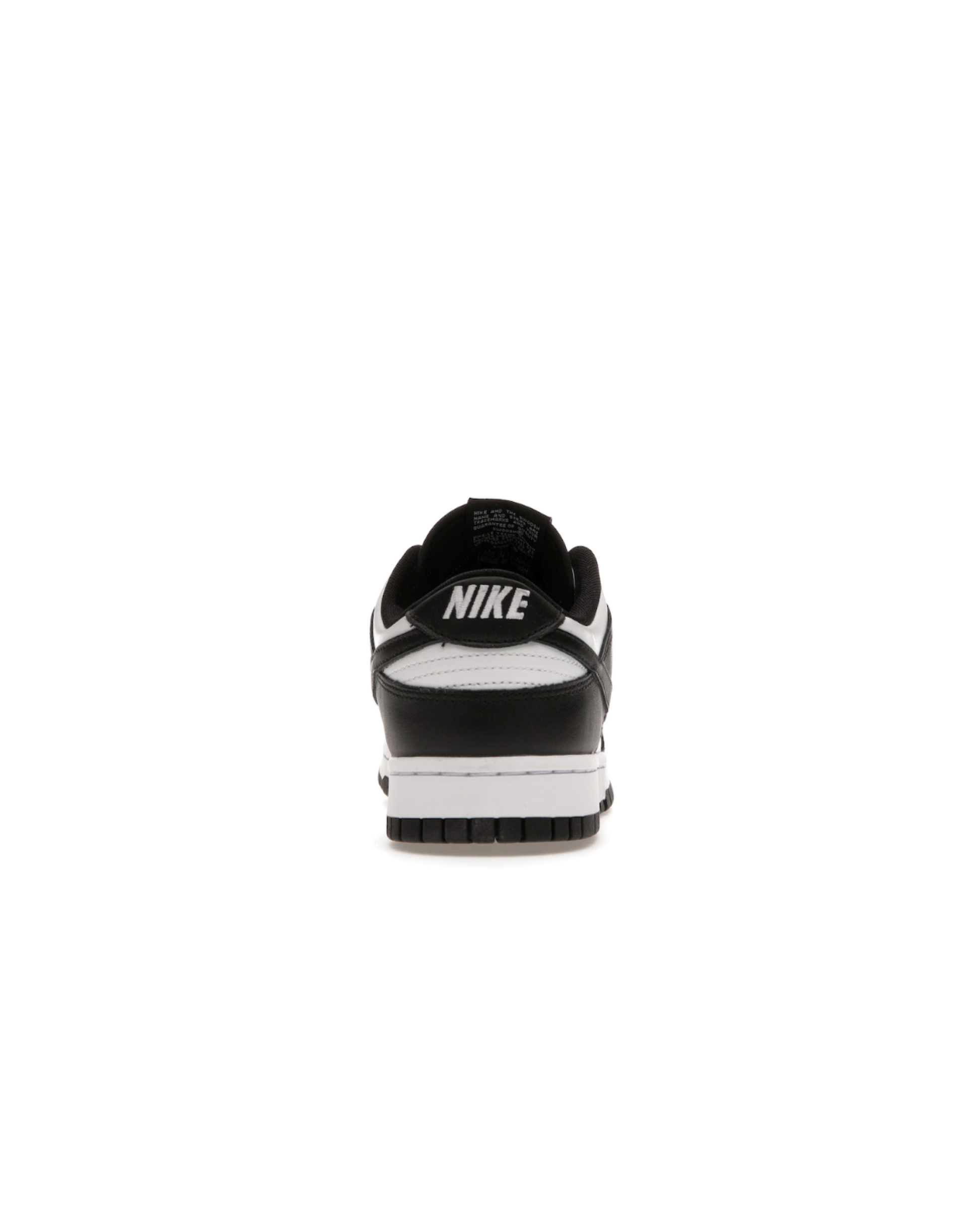 The upper Nike Dunk Low Retro White Black is constructed of white leather with black leather overlays and Swooshes. Classic Nike branding is featured on the nylon tongue, nodding to traditional Dunk design elements. A white midsole and black outsole complete the design.